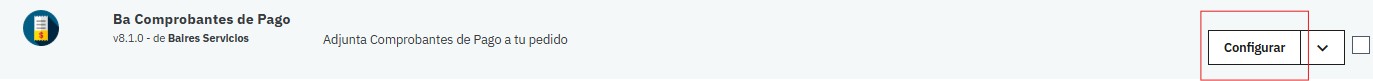 • Ingresar a Módulos > BA Comprobante de Pago > Configurar.