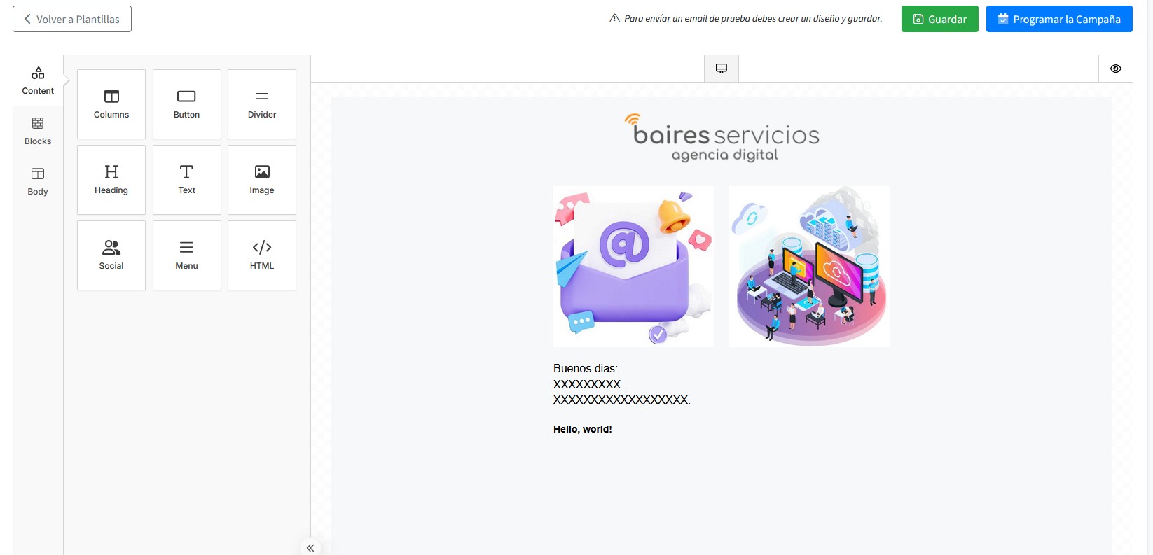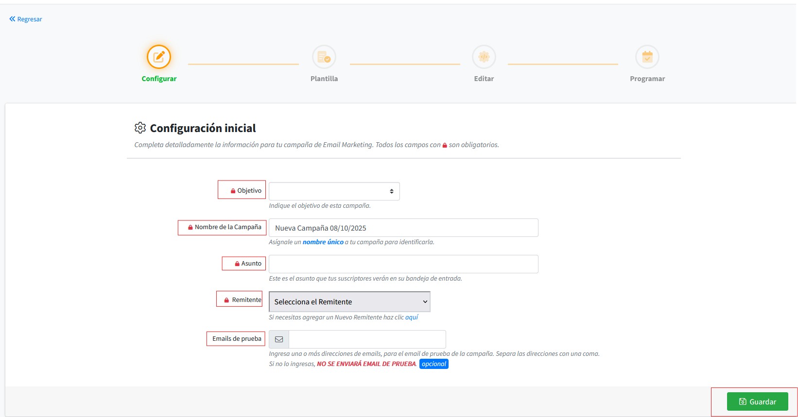 Antes de iniciar, definir claramente cuál es el objetivo de la campaña (por ejemplo: promoción, lanzamiento, comunicación institucional, etc.). Esto determinará el tipo de contenido y la segmentación del envío.