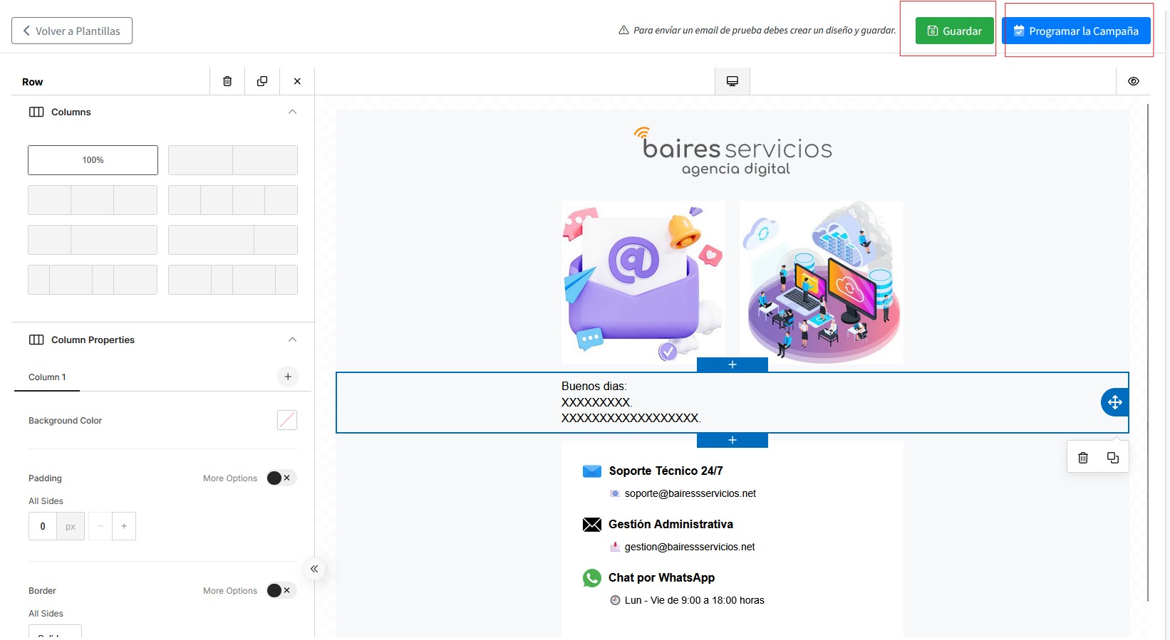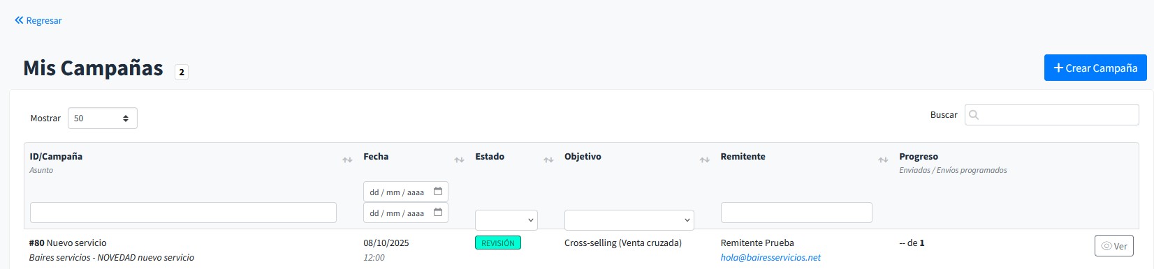Cuando se completa este proceso, la campaña quedará lista para enviarse.