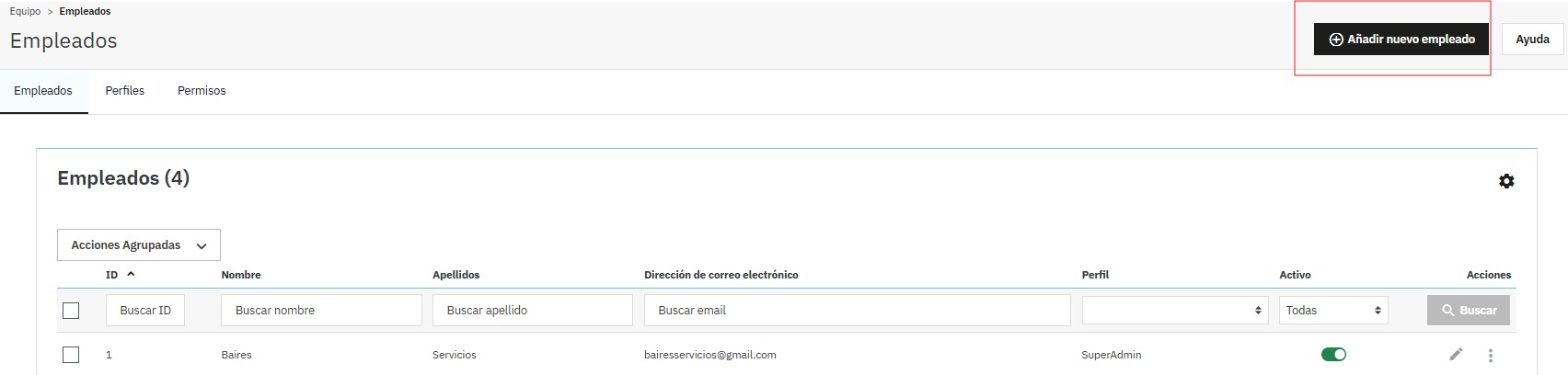 • 3. En la pestaña Empleados, se listan todos los usuarios actuales.