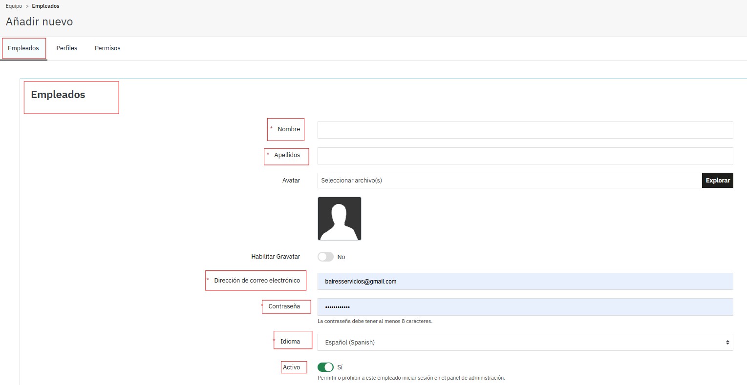 • 1. Hacer clic en el botón “Añadir nuevo empleado”.