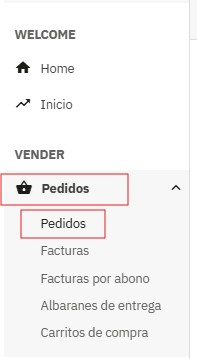 • 2. En el menú lateral, ir a Vender → Pedidos → Pedidos.