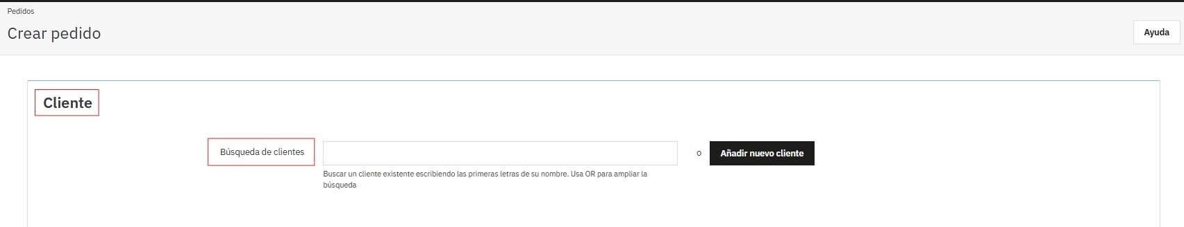 👉 Importante: solo se pueden generar pedidos asociados a clientes dados de alta. Si no existe, crearlo en Vender → Clientes → Clientes o con el botón negro “Añadir nuevo cliente”.