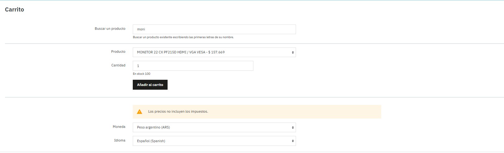 ✅ Importante: los precios mostrados no incluyen impuestos (mensaje de advertencia). Antes de continuar con el pago, verificar productos, cantidades y descuentos.