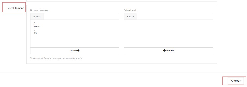 • Select Tamaño