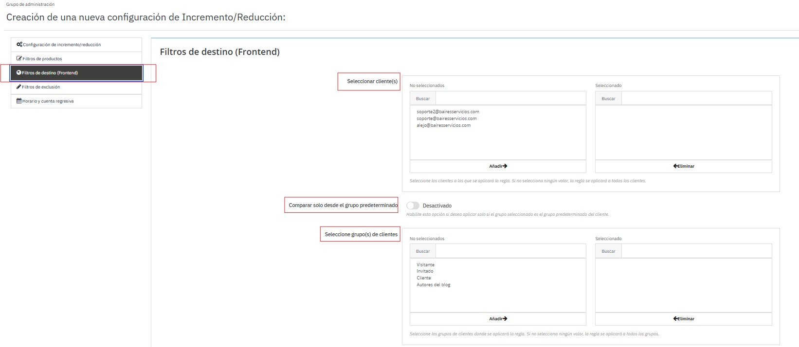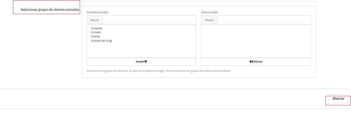 Aplicar la regla solo a clientes específicos (buscar y “Añadir ➡”).