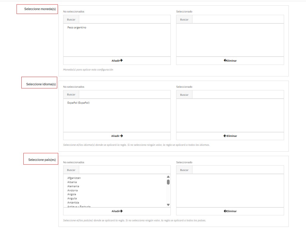 Aplicar por país (ej.: Argentina y Uruguay).