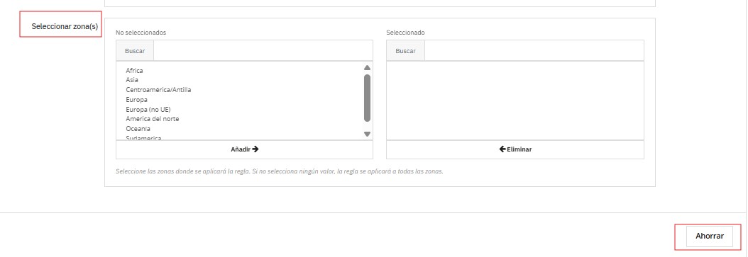 • Seleccione zona(s)