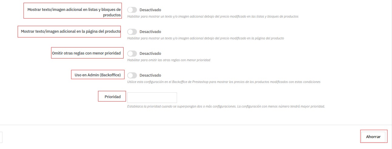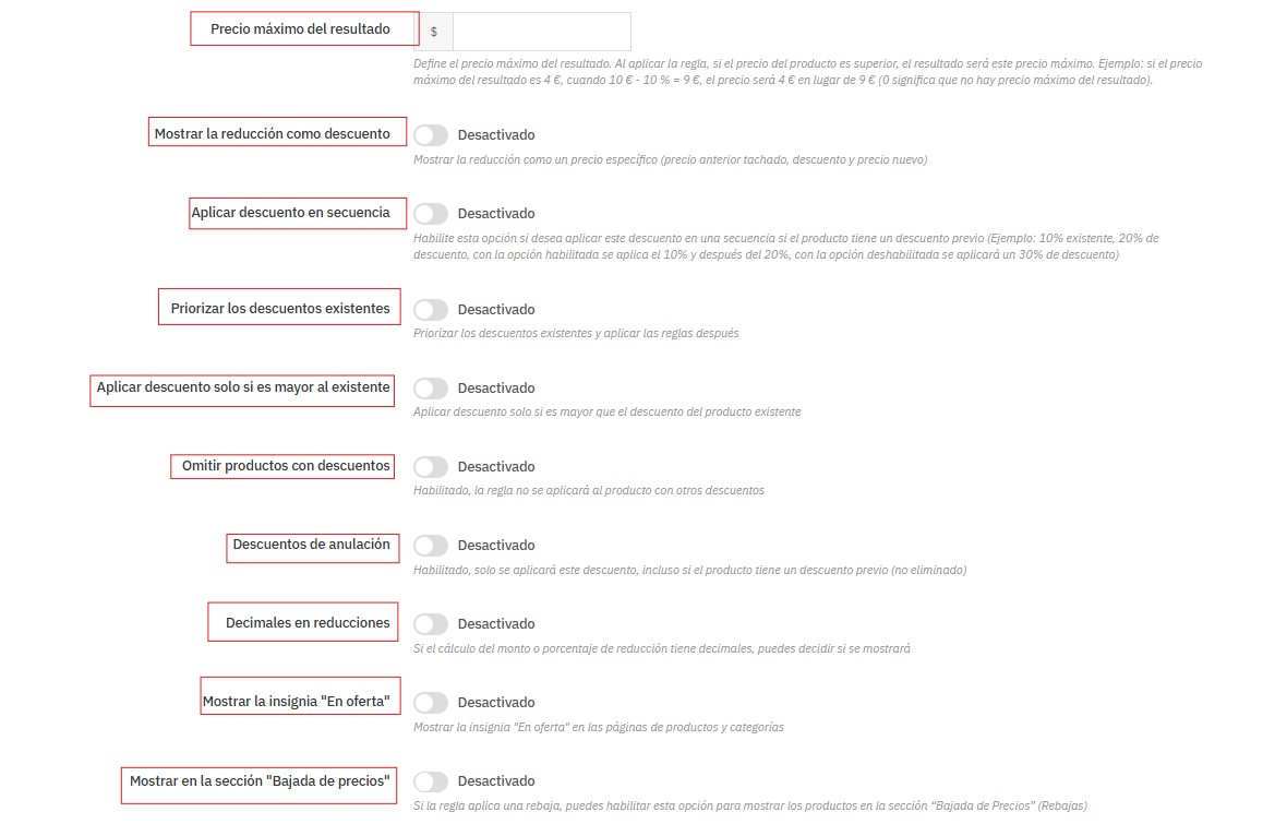 👉 Si está desactivado, la regla se aplicará sin considerar el precio del producto.
