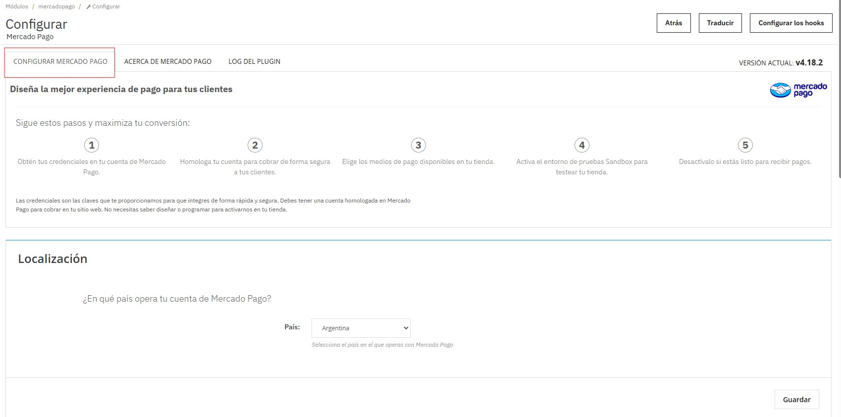 Guía práctica para activar Mercado Pago en PrestaShop 8.1: acceso al módulo, selección de país, carga de credenciales...
