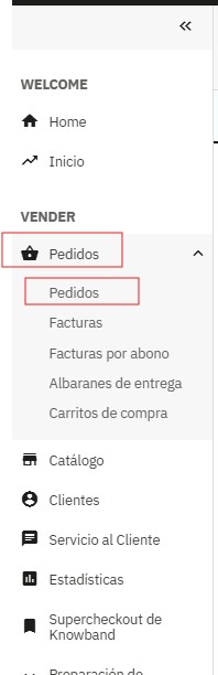 2.En el menú lateral, ir a Vender → Pedidos → Pedidos.