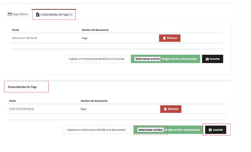 Al completar el proceso, aparecerá un mensaje de confirmación indicando que el comprobante fue subido correctamente.